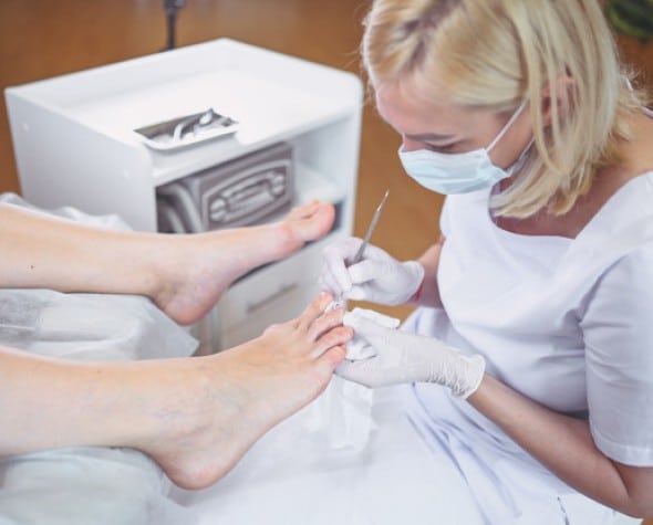 • The foot is treated with special products, including disinfectants that prevent contamination and infections. Unlike the traditional method, hot water steaming is not required.